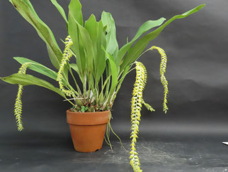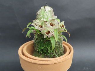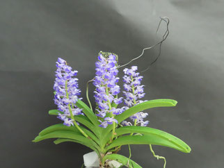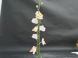 この株は3年前、中藤さんで購入したものです。購入時に既に根が垂れ下がり、 花の色も淡い色で気に入っています。子株も出来ているので少しずつ大株にした いです。